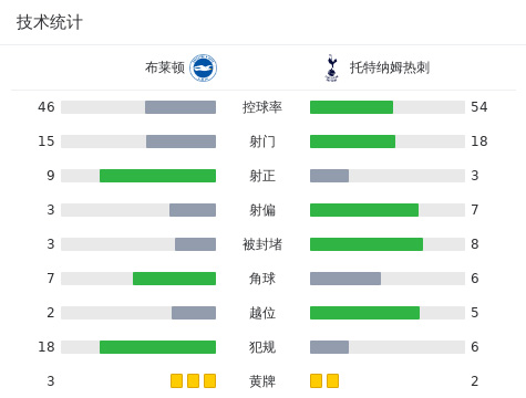 全场比赛结束,热刺2-4布莱顿。