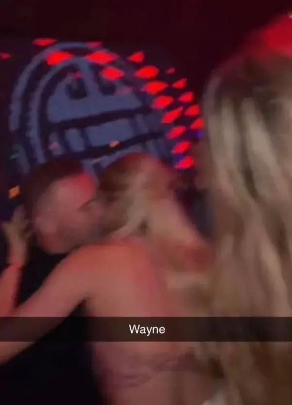 在这些照片中,身穿黑色卫衣和黑色牛仔裤的鲁尼似乎坐在椅子上睡着了,而背景中的床上躺着一个半裸的女子,另一个女子则在镜头前比着剪刀手,吐着舌头,从窗帘透出的光线来看,照片应该是在白天拍摄,但不知道是在酒店还是私人住处。