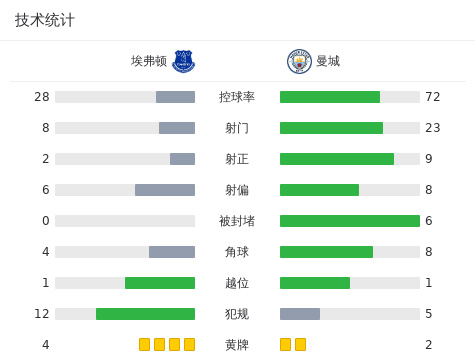 关键事件: 第29分钟,B席左路得球失误被断,罗德里反抢后失去平衡送出乌龙做球,麦克尼尔下底横传助攻哈里森包抄破门,埃弗顿1-0领先↓