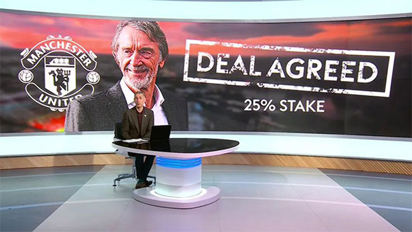 24直播网12月25日讯 曼联周日官方宣布,英国第二富豪吉姆·拉特克里夫爵士13亿美元(10.3亿英镑)收购俱乐部25%的股份已经完成,拉爵的英力士将接管足球业务,包括买卖球员、聘任或解雇主帅和足球工作人员等。这位71岁富豪承诺未来投资3亿美元(2.36亿英镑)改造老特拉福德球场。