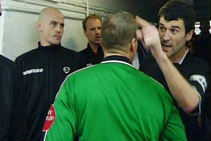 主裁判格雷厄姆·波尔被迫将两人分开,但基恩仍然提醒维埃拉:「有本事场上见分晓。」