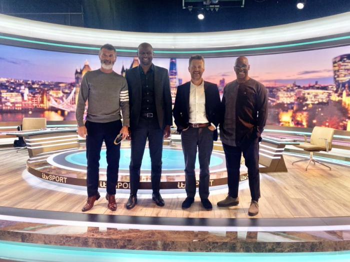 24直播网讯 曼联传奇队长罗伊·基恩在本届欧洲杯担任解说,与昔日对手维埃拉再次合作。在合影中,不服输的爱尔兰硬汉踮起脚尖,不希望自己显得比前阿森纳队长矮小。
