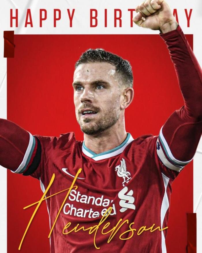 利物浦官推晒出亨德森的照片,上面有“生日快乐”字样,并写道:“我们的队长,祝你度过美好的一天!”