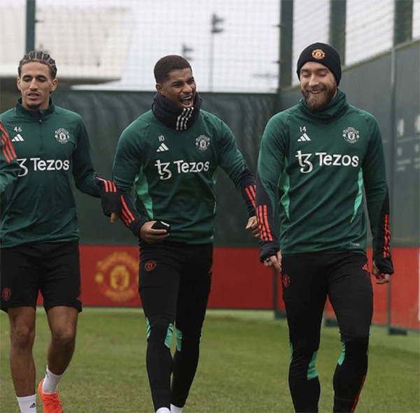 根据曼联公布的周一训练照片,丹麦老将埃里克森已经恢复训练,他与换了新发型的汉尼拔·梅杰布里、病愈的拉什福德等队友谈笑风生。此前,因为膝盖严重受伤,31岁的埃神错过了曼联过去的7场比赛,现在他有望在圣诞新年赛程重返球场,这对滕哈格的中场用人将带来一定的帮助。