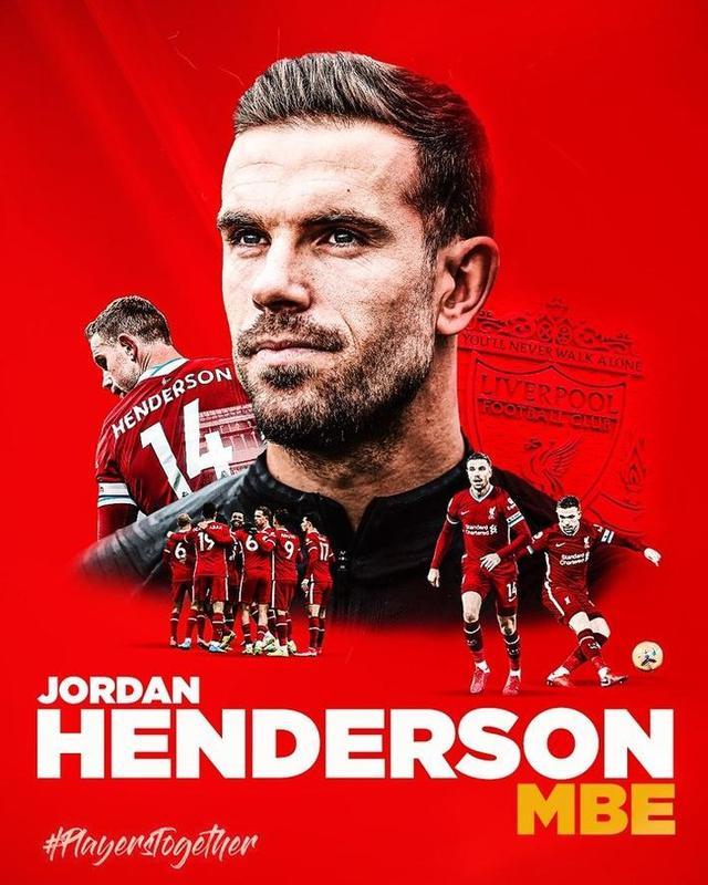 利物浦官方:“一个伟大的球员和人。我们都为你感到骄傲@亨德森。”