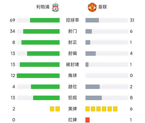 利物浦0-0曼联 红军狂轰34脚无果达洛特5秒连吃2黄