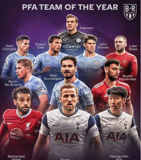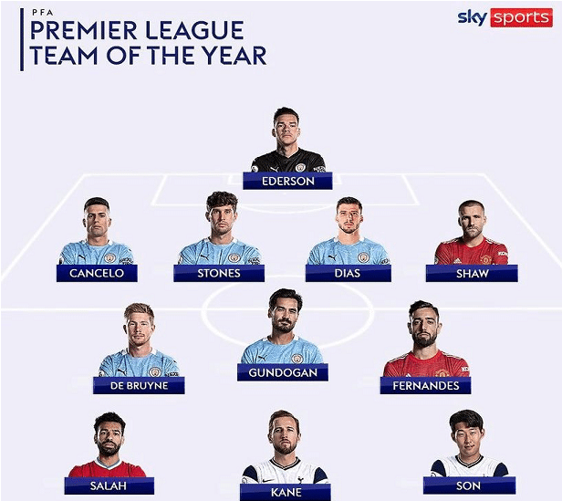 24直播网讯 英格兰职业球员协会(PFA)公布了本赛季英超最佳阵容,而这个最佳阵容和大部分球迷想象的一样,表现最好的球员全部入选了。而入选最佳阵容的11名球员中,6人来自曼城,2人来自热刺,2人来自曼联,1人来自利物浦。不知道,你喜欢的球星有没有入选赛季最佳阵容呢?好了,话不多说,一起看看英格兰职业球员协会评选的赛季最佳阵容吧!