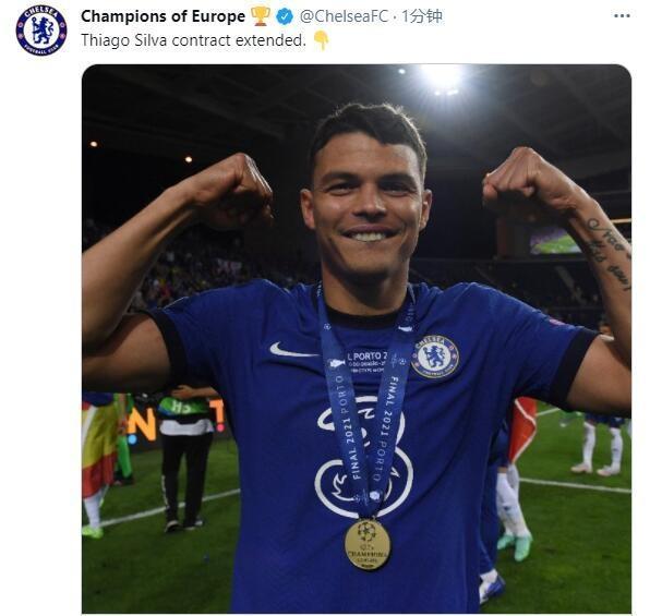 切尔西与蒂亚戈-席尔瓦完成续约。