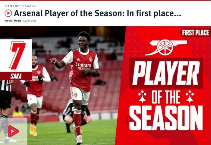 24直播网讯 今日,阿森纳官方宣布,萨卡当选球队赛季最佳球员。