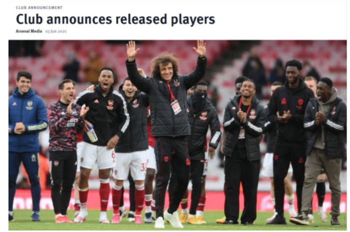 官方宣布塞瓦略斯、厄德高和大卫-路易斯等球员合同到期离队。