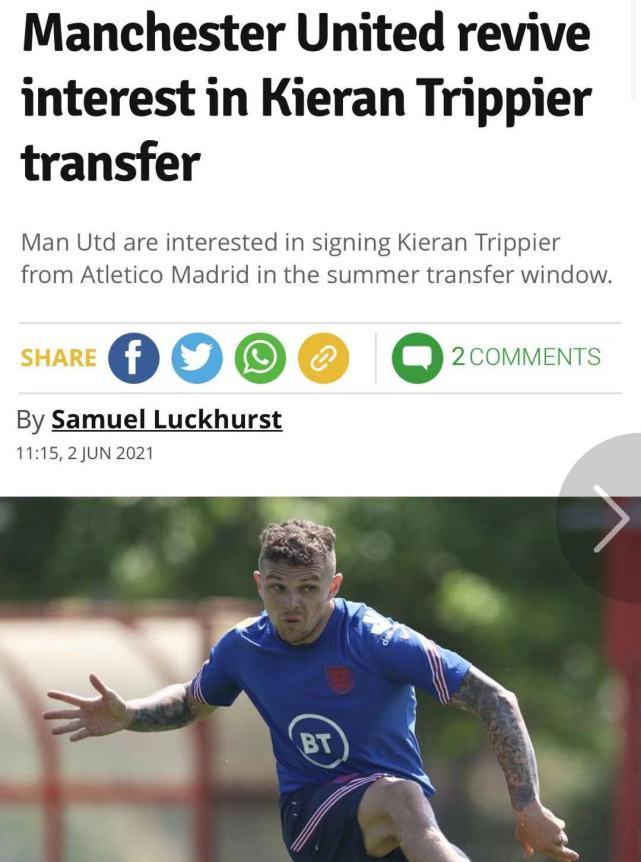 作为马竞2019年花费了2000万镑引进的强援,特里皮尔上赛季为马竞出场35次,贡献了6次助攻,他也帮助球队夺得了本赛季西甲冠军,并且入选了英格兰欧洲杯26人最终参赛名单。目前在德国《转会市场》上,特里皮尔身价依然高达2000万欧元。由于他与马竞合同明夏就将到期,再加上马竞的债务也飙升至接近10亿欧元,曼联今夏有望以一个比较低廉的价格,签下这位英格兰主力右后卫。