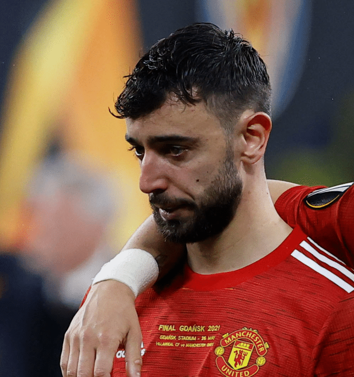 24直播网讯 尽管曼联本赛季在英超排名上取得了进步,但索尔斯克亚的球队未能以理想的结局结束赛季,欧联杯决赛不敌比利亚雷亚尔,让赛季以失败告终。英国《曼彻斯特晚报》称,球队核心布鲁诺·费尔南德斯可能决定换个号码,改变运气。