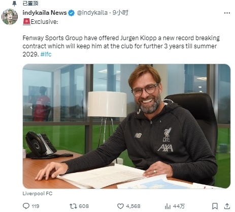 24直播网12月15日,来自知名英媒indykaila news的报道,英超豪门利物浦俱乐部,准备向自家主帅克洛普提供一份创纪录年薪的合同,留他到2029年夏天。