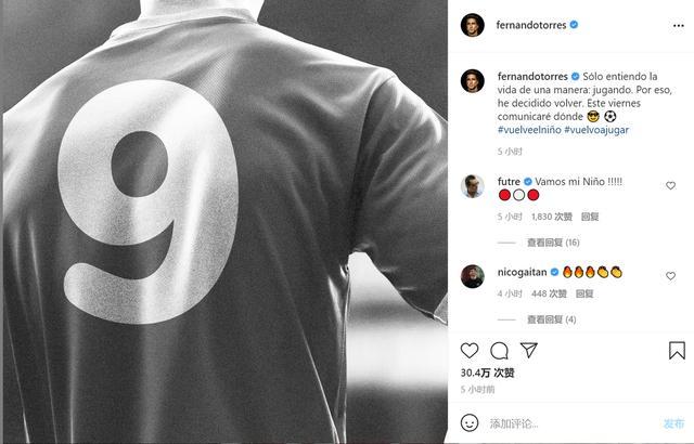 托雷斯在2019年6月宣布退役,但今天这位37岁的西班牙前锋表示自己将复出,他写道:“我所了解的生活只有一种,那就是足球。因此我决定复出,本周五我将宣布自己去哪里踢球。”