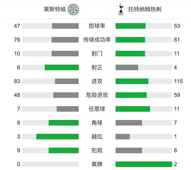 全场比赛结束,热刺4-2逆转莱斯特城。