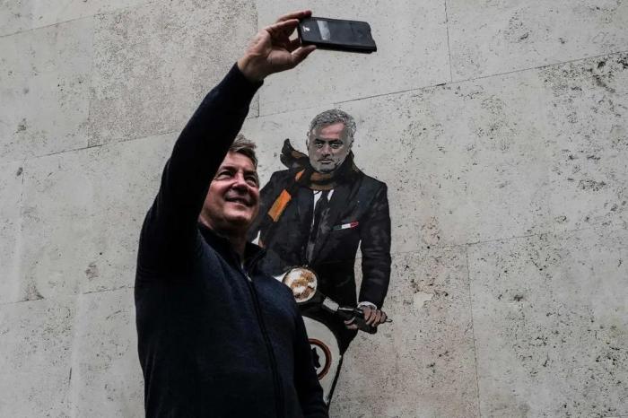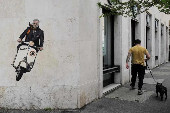 罗马俱乐部训练场外,已经能看到球迷佩戴穆里尼奥头像口罩的场景,街头穆里尼奥骑着摩托而来的壁画,也吸引了许多人合影——“特别的那一个,会让我们更特别!”球迷如是呼喊。