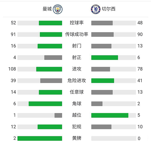 第62分钟,阿斯皮利奎塔前场有侧得球回传弧顶,齐耶赫一脚远射直接将球打入球门右侧死角,切尔西1-1曼城。