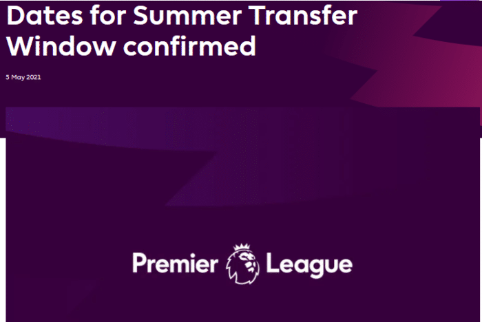 官方: 英超夏季转会窗6月9日开启, 9月1日关闭