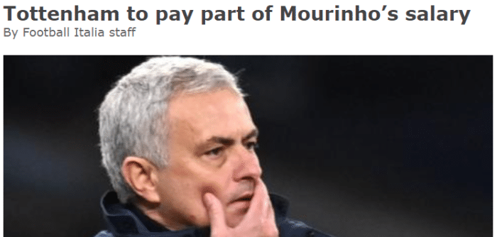 24直播网讯据意大利天空体育报道,穆里尼奥在罗马首个赛季的年薪为1600万欧元,其中900万欧元将由热刺支付。