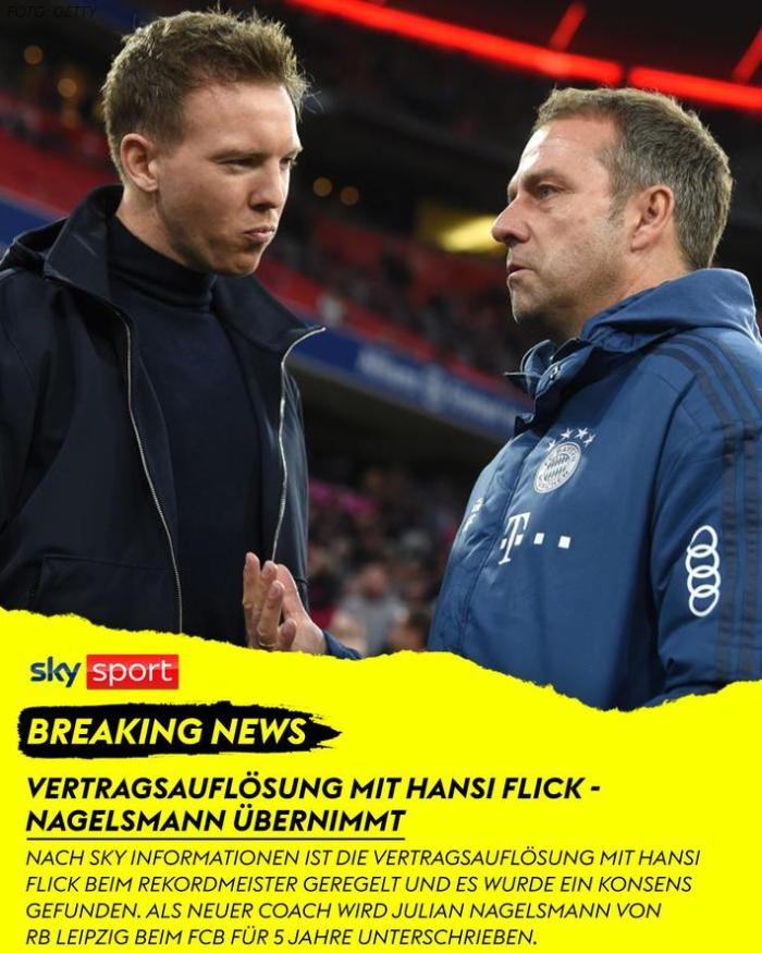 24直播网讯 北京时间4月27日,据德国天空体育报道,弗里克已经与拜仁解约,纳格尔斯曼在今日与拜仁签下5年的合约。