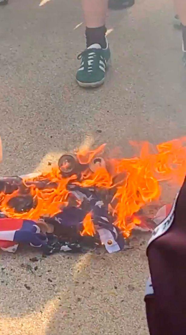 欧超让曼联备受压力,不仅是对手球迷,连红魔自己的拥趸都在卡林顿、老特拉福德进行了反对活动,球迷甚至焚烧了美国星条旗,高呼「Fuck off」,表示对老板格雷泽家族的抗议。