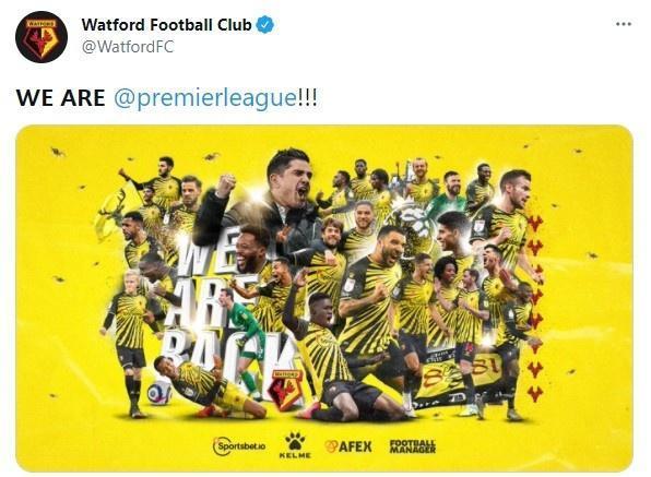 提前两轮升级成功!沃特福德时隔一个赛季重返英超