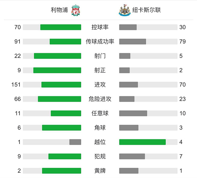 全场比赛结束,利物浦主场1-1战平纽卡斯尔联。