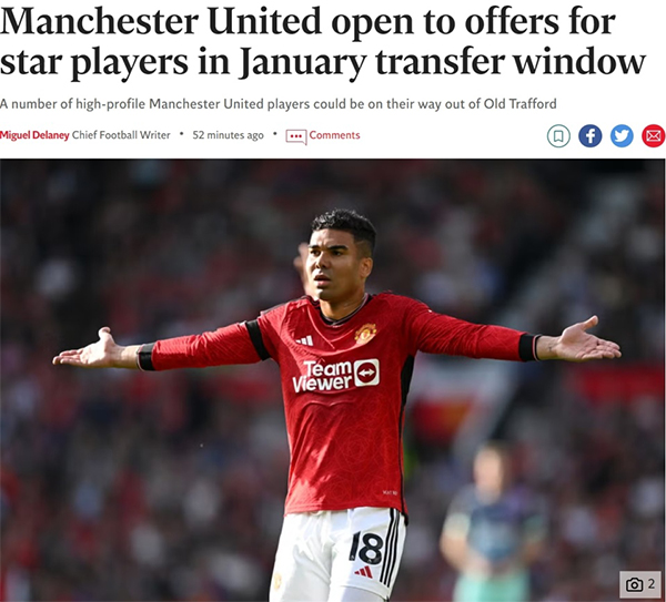 24直播网12月08日,来自《独立报》记者Miguel Delaney的最新消息,曼联计划在冬窗出售一些队内球星,包括卡塞米罗、瓦拉内以及桑乔,都被允许在冬窗转会,曼联愿意听取外界对他们的一切报价。