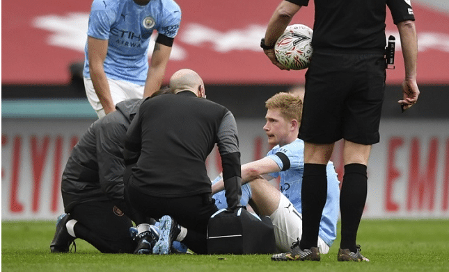 本场比赛第47分钟,德布劳内在和坎特争抢的时候扭到了脚踝,受伤下场。而赛后,比利时著名记者Kristof Terreur报道,德布劳内的伤情不容乐观,他的右脚踝严重肿胀,光是消肿都要两天,而具体要休息多久还要等消肿之后才能知道。而曼城主帅瓜迪奥拉也表示:‘我不知道,但是他看起来不妙。’也有部分媒体表示,他可能会错失首回合对阵巴黎的欧冠比赛,当然如果错失对阵巴黎的欧冠比赛,那么下周末对阵热刺的联赛杯决赛德布劳内肯定也无法出场,这下巴黎和热刺肯定开心了,因为没有了德布劳内,曼城的实力要下滑一个档次哦。