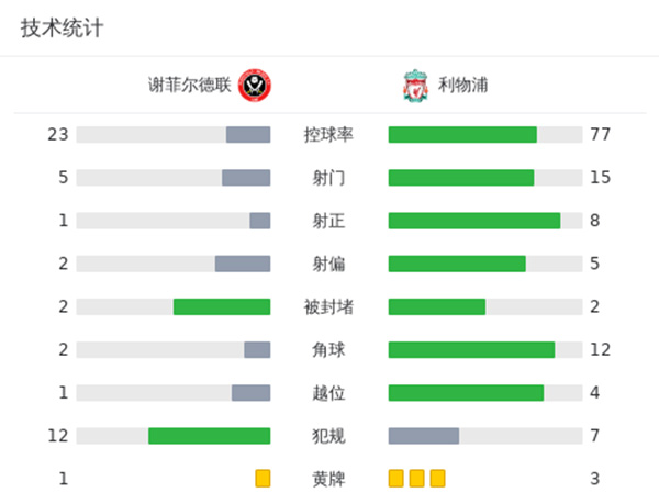 全场比赛结束,最终利物浦2-0谢菲尔德联队。