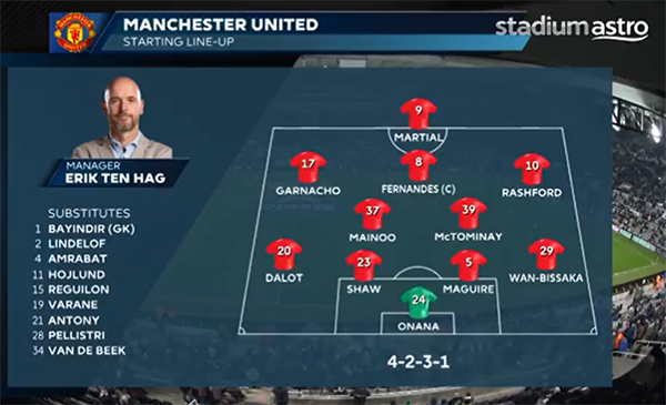 在赛后新闻发布会上被问及自己的安排时,滕哈格解释说,除了上述原因外,他的计划是让万比萨卡和达洛同时出场,因为两人分别在上轮英超和欧冠得到了轮休,体能充足,可以更多参与防守和助攻。