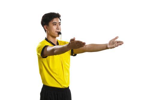 足球裁判手势能帮助喧闹的球场让球员解读犯规行为,红黄牌是标准的方法是记录犯规队员的信息,站在至少离犯规队员一臂远的地方,一手持牌直臂上举,让牌能够清晰可见,换人是裁判可以用类似招手欢迎入场的手势,如果有必要也可以在赛前会议中明确规定手势,点球要求裁判五指收拢单臂向前斜下举,明确指向执行点球的罚球点,进球进球的信号是裁判转身指向中圈开球点,在发出信号之前,裁判应该注意观察门前队员的反应。