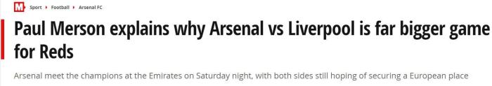 默森认为,阿森纳与利物浦都在专注于获得下个赛季欧冠席位,阿森纳可能更需要争夺欧联杯冠军,利物浦则需要全力在联赛争四。利物浦的争四直接对手切尔西本轮将对阵西布朗,如果蓝军取胜,他们将比利物浦高出8分。