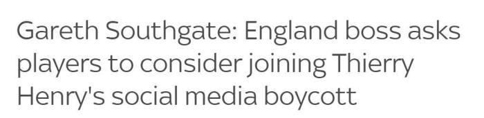 24直播网2月29日讯近日,阿森纳传奇球星亨利关闭了自己所有的个人社交媒体,英格兰主帅索斯盖特表示,所有的球员都应考虑向亨利学习。