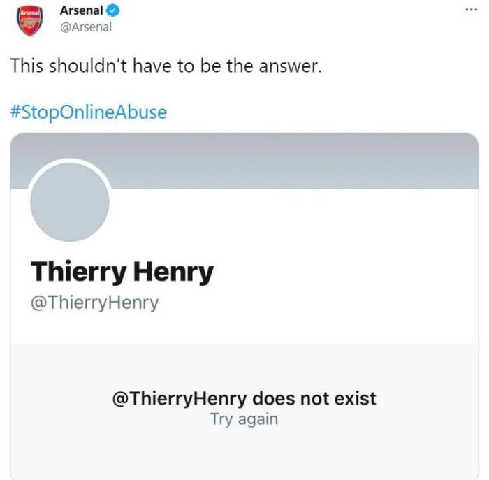 阿森纳官方放出亨利个人社交媒体的截图,并写道:“这不该是解决问题的答案。”