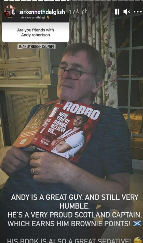 达格利什回答:“安迪是一个好小伙,很谦逊,他是一位令人骄傲的苏格兰队长,这很给他加分。但是他的书,是很好的镇定剂,让人犯困。”