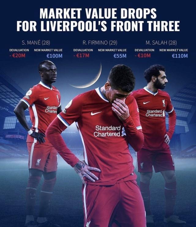 而巴西国脚菲尔米诺同样出场37次,不过只打进6粒进球,此外奉献了7次助攻。他的身价也从7200万欧下滑至5500万欧。三叉戟当中,马内的身价降幅最大,他从1.2亿欧身价下降至1亿欧,本赛季马内在37场比赛中,打进12球并送出5次助攻。