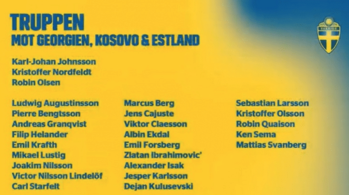 今日瑞典国家队公布了最新一期国家队大名单,其中39岁伊布出现在大名单中。