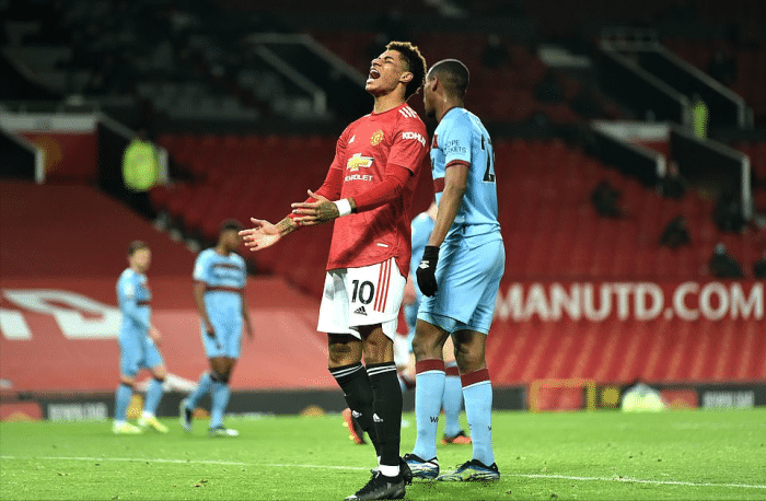 24直播网3月16日讯在曼联1-0击败西汉姆的比赛中,拉什福德错失头球破门良机,梅森·格林伍德则两次中柱,红魔最后凭借铁锤帮后卫克雷格·道森自摆乌龙,才取得胜利。赛后,索尔斯克亚戏称前锋的射门水平让他多了很多白头发。
