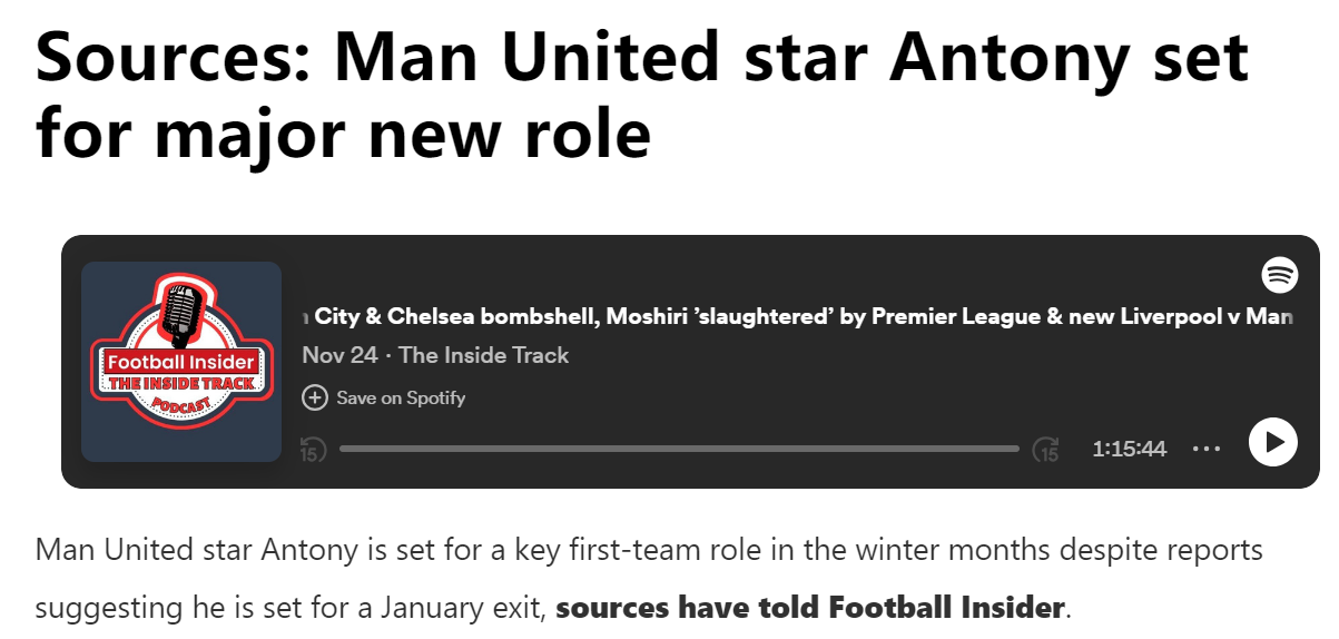 23岁的安东尼自从去年加盟初期有过连续进球的高光后,很快陷入沉寂,并且在场外深陷家暴丑闻,进一步影响了发挥。有传曼联打算清洗他,但「足球内幕」报道披露,滕哈格并不打算放弃从阿贾克斯合作至今的爱将,并打算让他在圣诞快车期间扮演关键角色,绝对不会在1月份寻求出售。