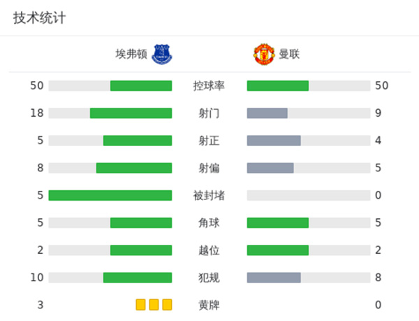 最终全场比赛结束,曼联3-0战胜埃弗顿。