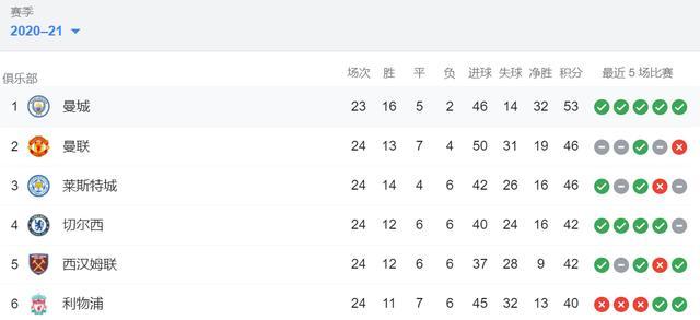 本轮联赛,利物浦1-3惨遭莱斯特城逆转,现在他们24轮40分排名英超第六,落后切尔西和西汉姆2分。
