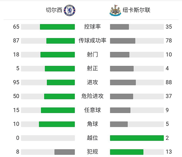 查看:切尔西vs纽卡斯尔 全场录像技术统计: