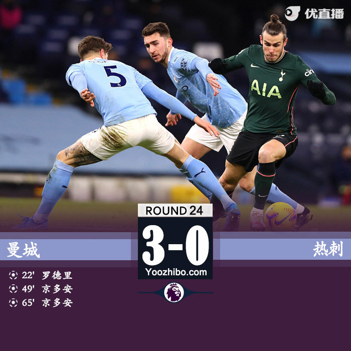 曼城3-0热刺 京多安梅开二度后伤退罗德里点射