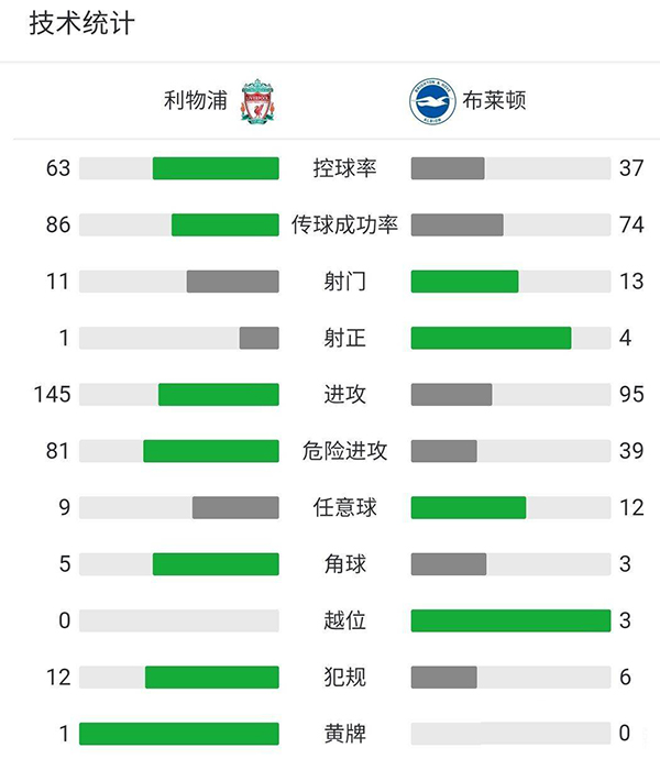 查看:利物浦vs布莱顿 全场录像技术统计: