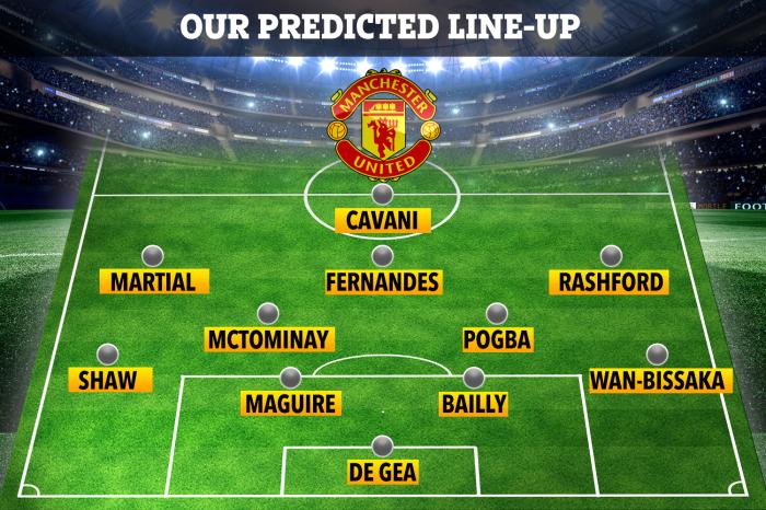 《太阳报》预测曼联首发阵容:德赫亚/万比萨卡,巴伊,马奎尔,卢克·肖/博格巴,麦克托米内/拉什福德,布鲁诺·费尔南德斯,马夏尔/卡瓦尼。