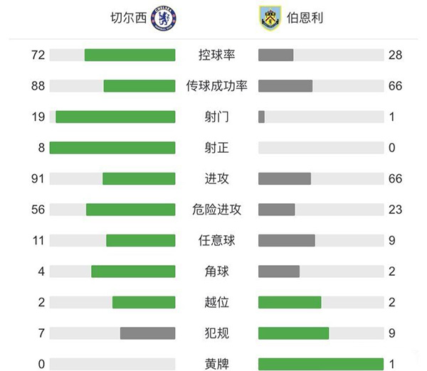 查看:切尔西vs伯恩利 全场录像技术统计: