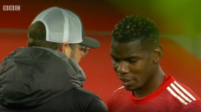 24直播网1月25日讯 在今天凌晨的足总杯双红会之后,BBC的直播镜头拍到利物浦主帅克洛普和曼联中场博格巴在场上有说有笑,引发球迷热议。