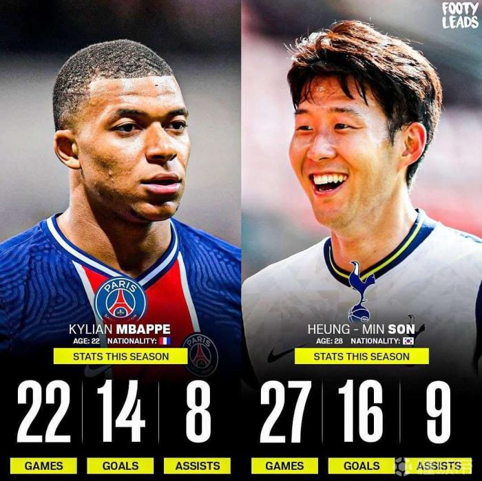 24直播网1月23日讯 本赛季开始之后,热刺全队的表现非常出色,而热刺队内的韩国球星孙兴慜的表现更是现象级的。而穆里尼奥不止一次盛赞孙兴慜是世界级的球星了。那么,孙兴慜到底算不算世界级的球星呢?近期,就有媒体拿孙兴慜和姆巴佩进行了对比,一起看看孙兴慜和姆巴佩到底是否有差距呢?好了,话不多说,一起看看两人的数据对比,看看谁更出色吧!
