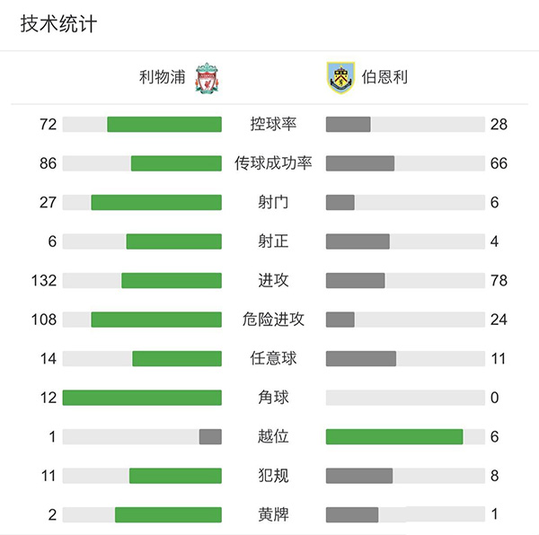 查看:利物浦vs伯恩利 全场录像技术统计: